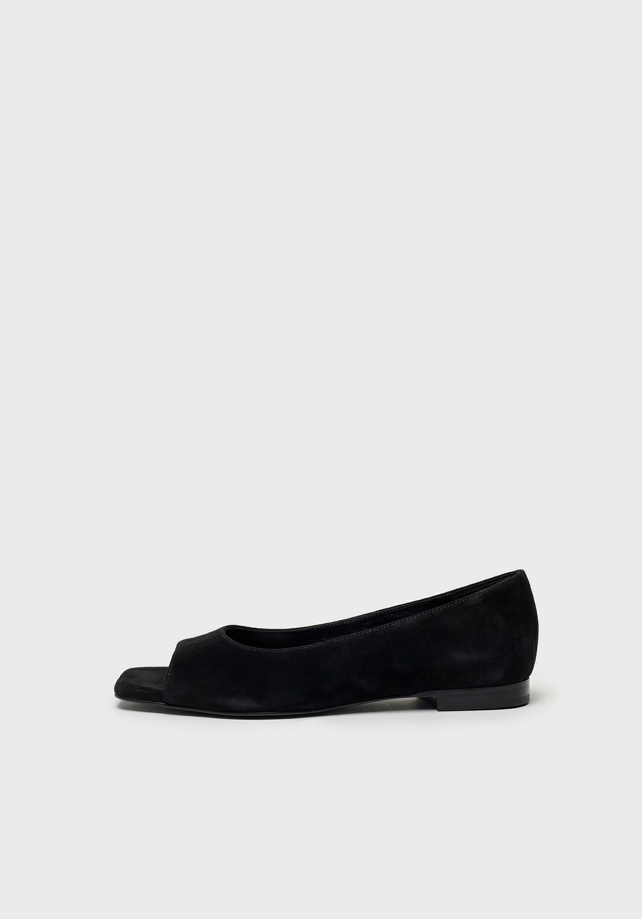 Square Open-Toe Flats / Pumps – Black Suede