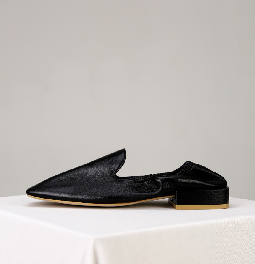 뒷꿈치를 감싸는 컵굽을 사용하여 디자인 요소를 주었고