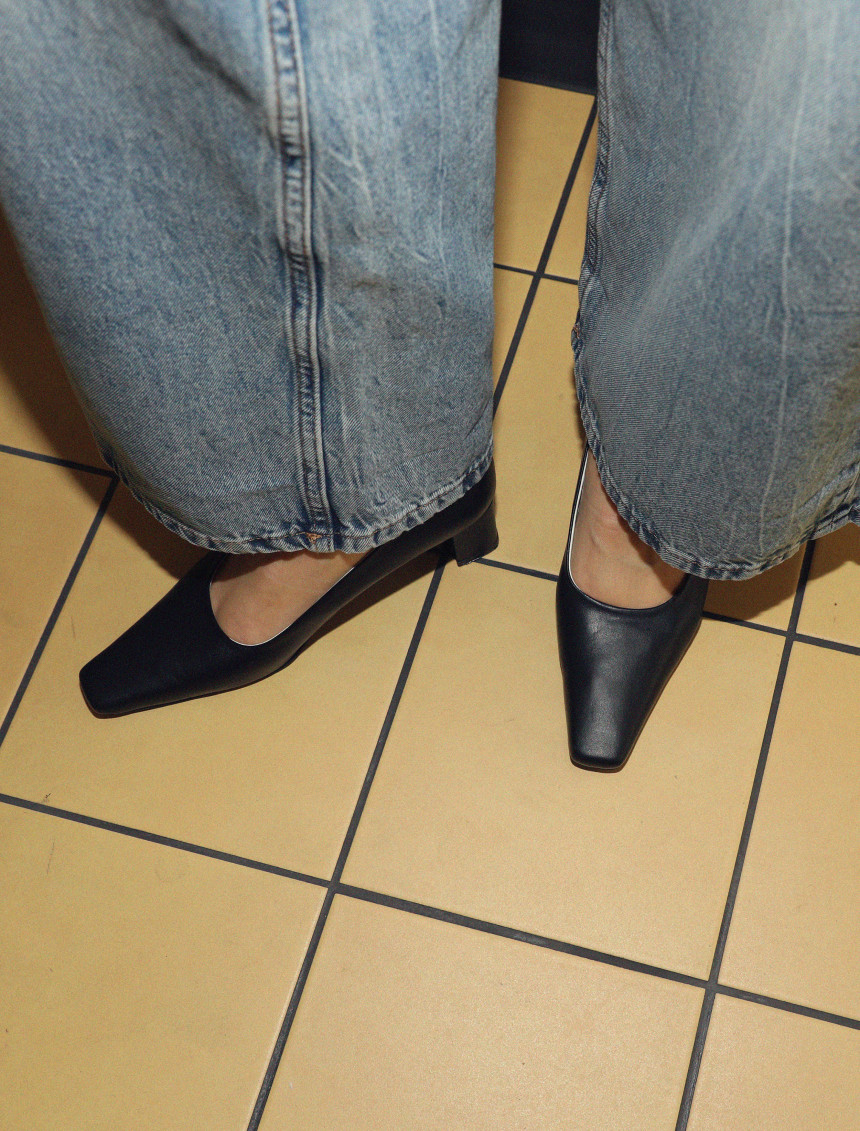 90년대의 향수가 느껴지는 스퀘어토의 베이직 펌프스 입니다.