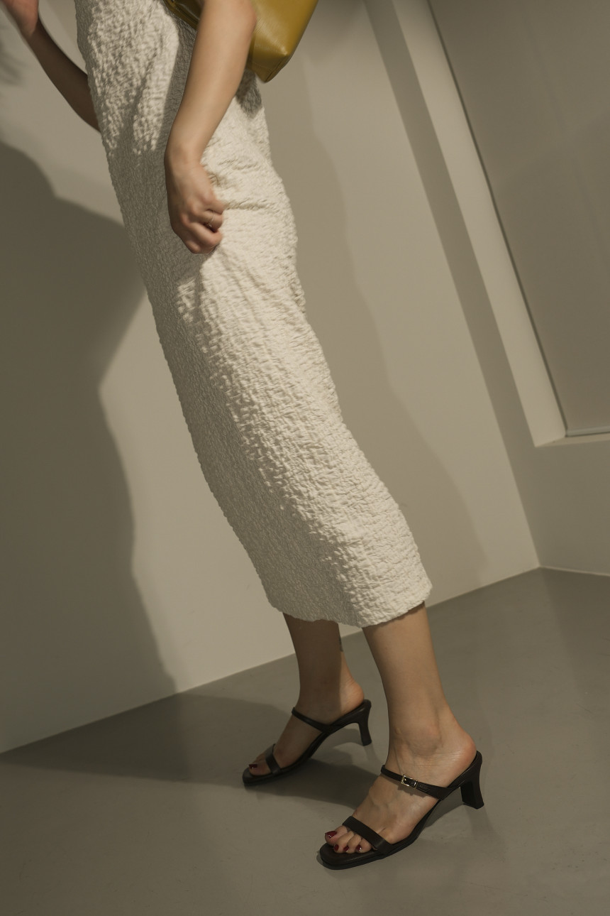 머메이드 라인으로 떨어져 조직감이 느껴지는 스커트와,