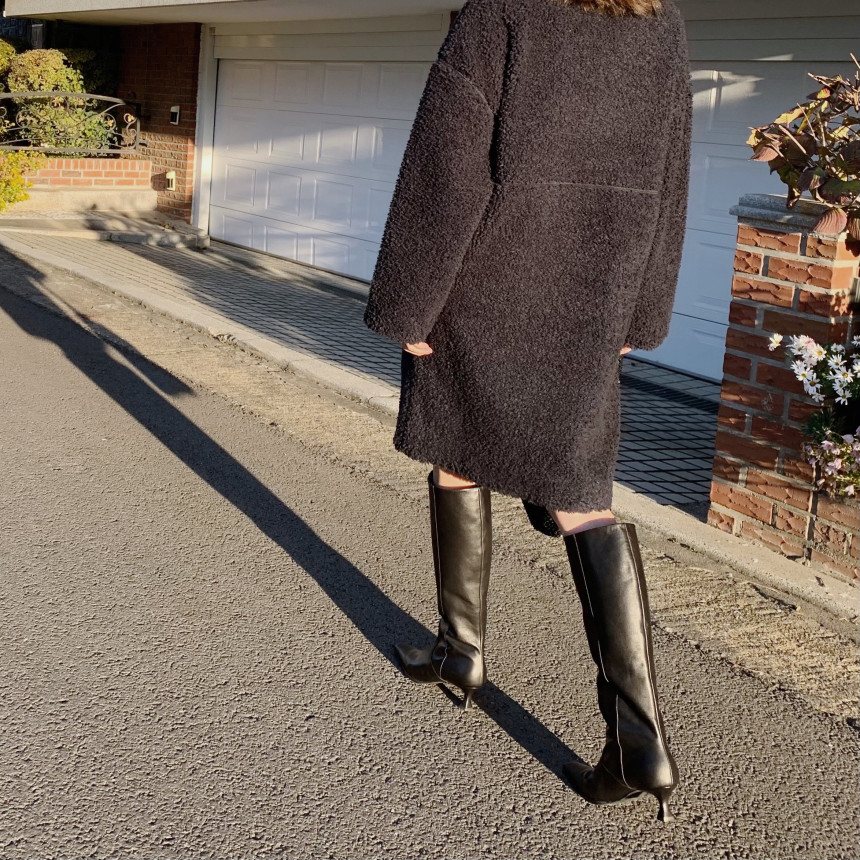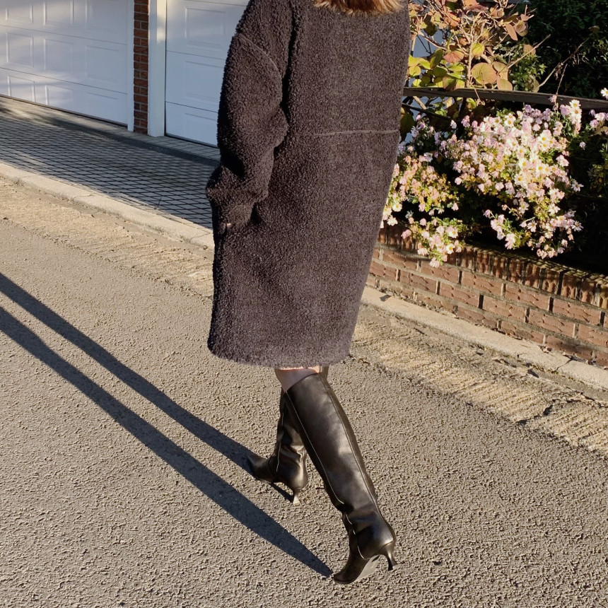 시크한 라인감의 무드가 보이는 니하이부츠 입니다.